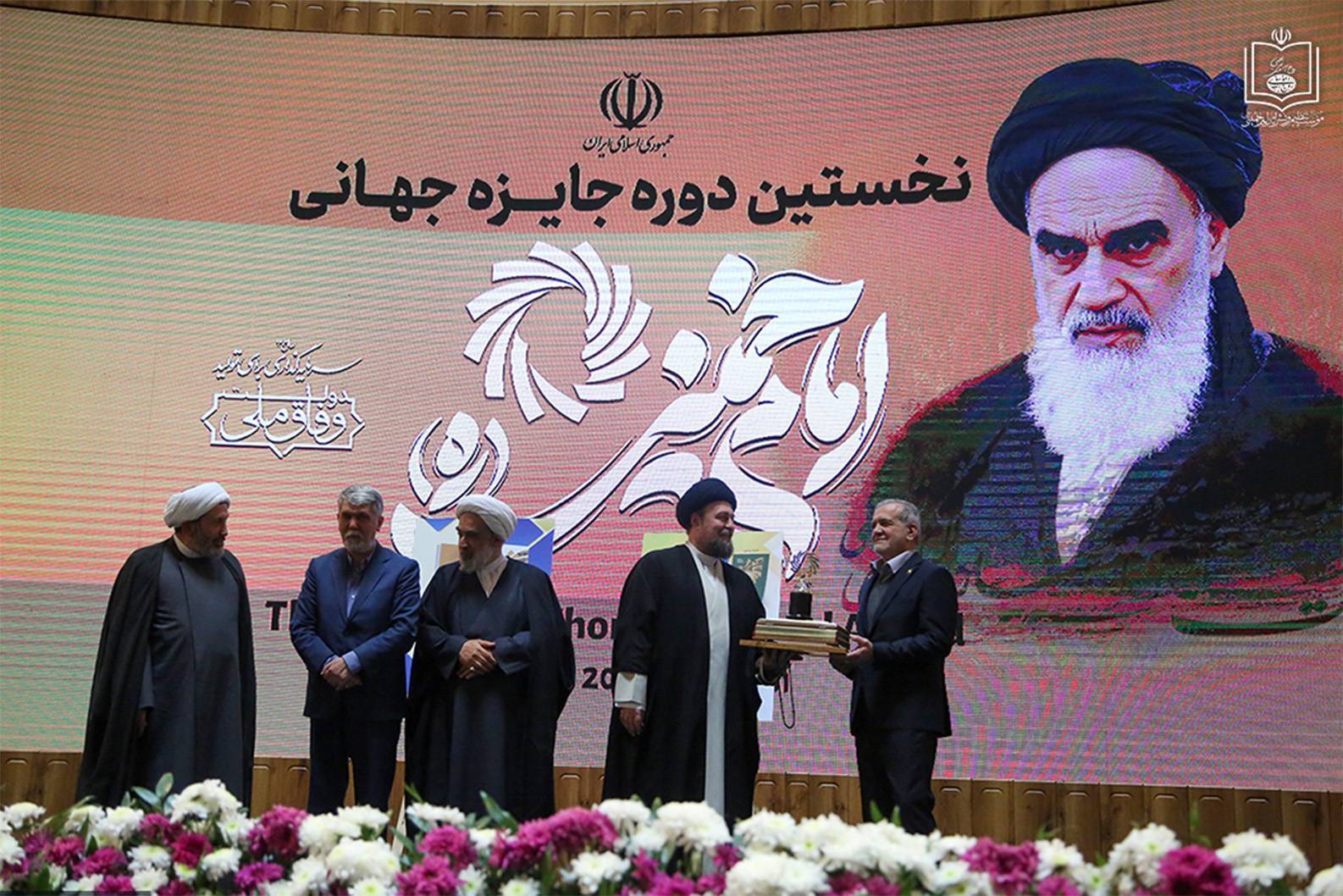 به گزارش روابط عمومی مؤسسه تنظیم و نشر آثار امام خمینی(س)، مراسم پایانی نخستین دوره اعطای جایزه جهانی امام خمینی(س)، روز چهارشنبه ۲۶ آذرماه ۱۴۰۴، با حضور مسعود پزشکیان، رئیسجمهوری اسلامی ایران، آیتالله سید حسن خمینی و اعضای بیت امام، حجتالاسلاموالمسلمین دکتر علی کمساری، رئیس مؤسسه، و جمعی از اندیشمندان و صاحبنظران داخلی و بینالمللی، در سالن اجلاس سران برگزار شد.