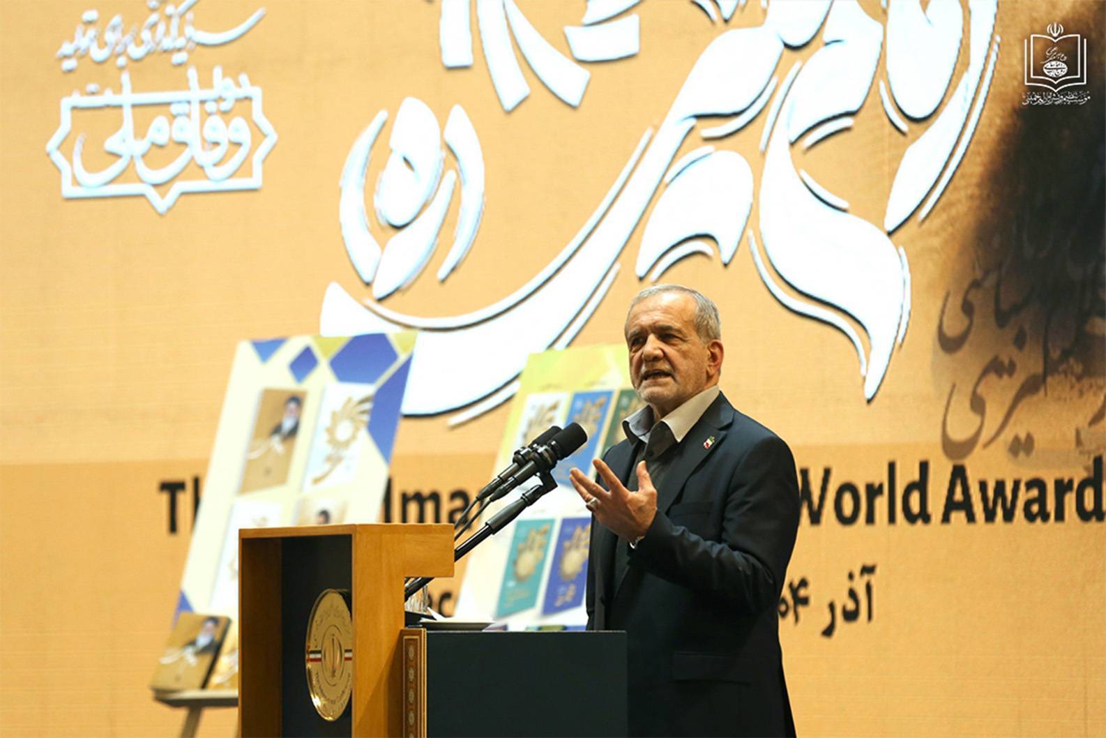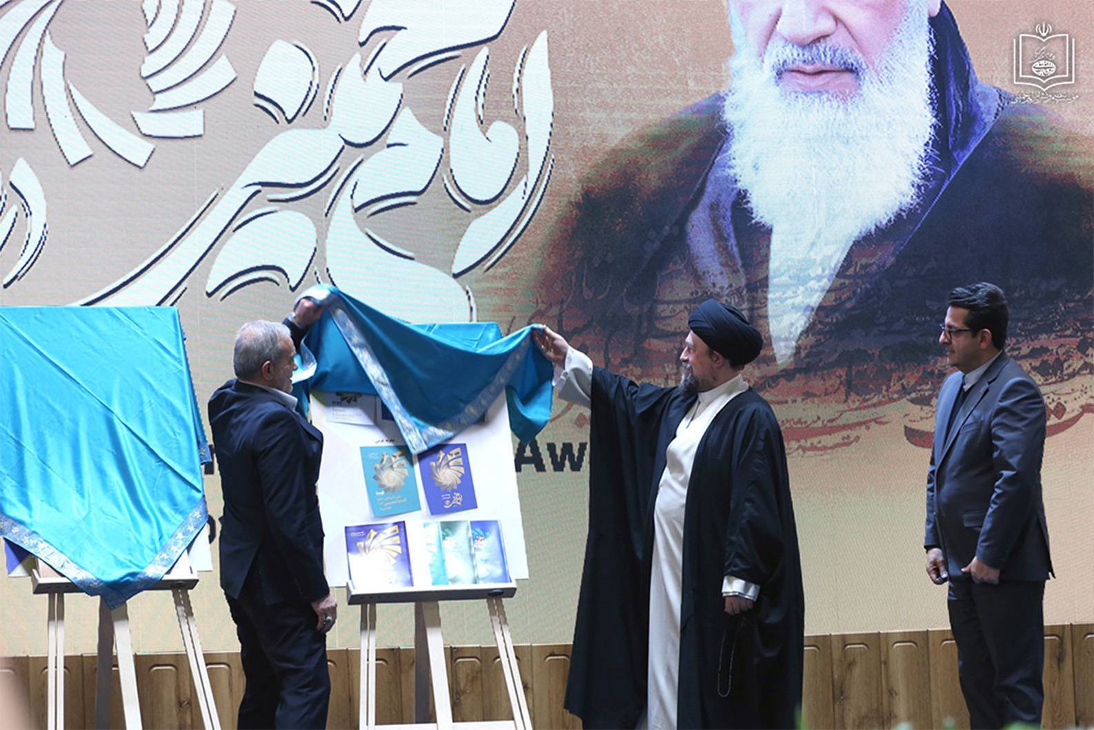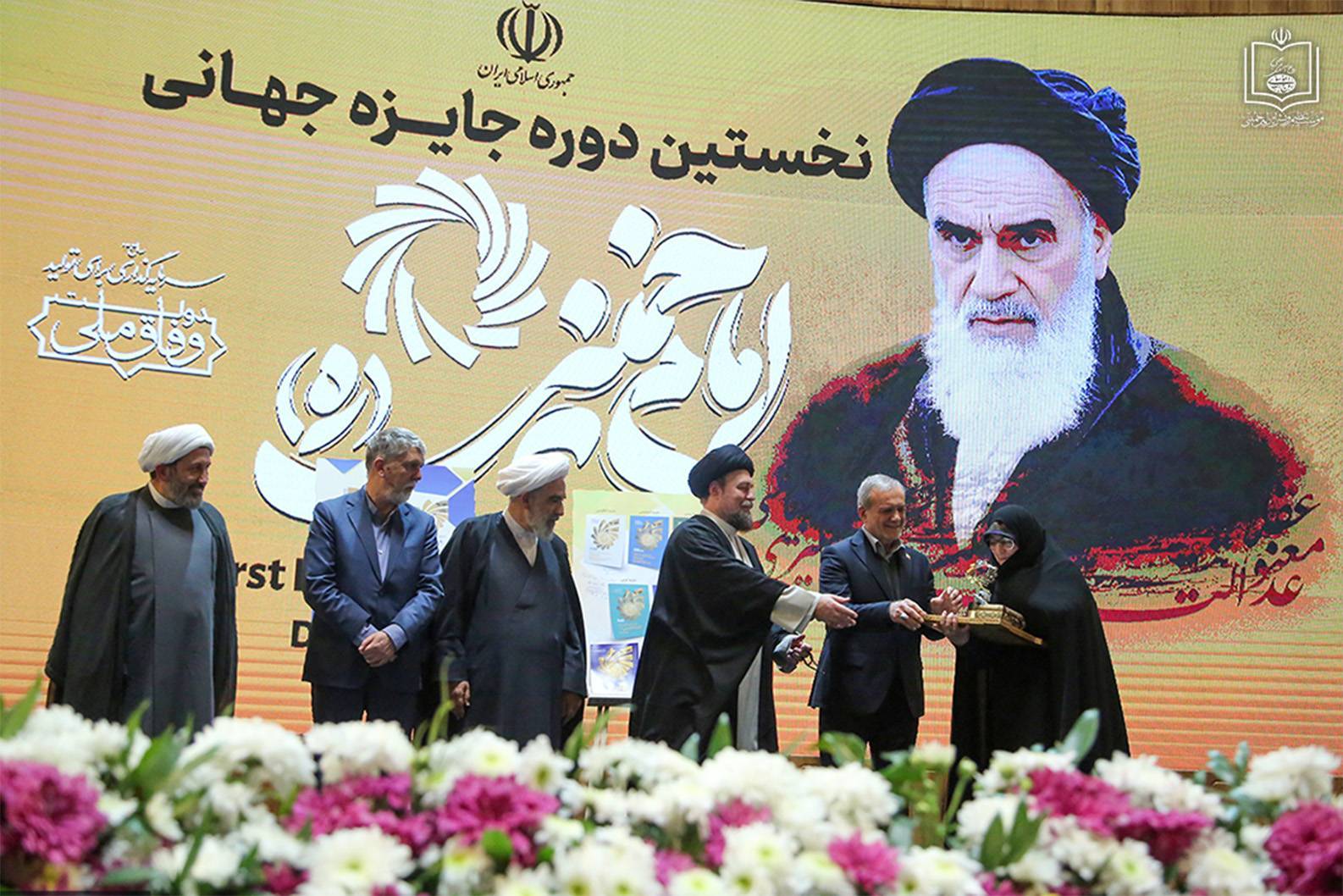به گزارش روابط عمومی مؤسسه تنظیم و نشر آثار امام خمینی(س)، مراسم پایانی نخستین دوره اعطای جایزه جهانی امام خمینی(س)، روز چهارشنبه ۲۶ آذرماه ۱۴۰۴، با حضور مسعود پزشکیان، رئیسجمهوری اسلامی ایران، آیتالله سید حسن خمینی و اعضای بیت امام، حجتالاسلاموالمسلمین دکتر علی کمساری، رئیس مؤسسه، و جمعی از اندیشمندان و صاحبنظران داخلی و بینالمللی، در سالن اجلاس سران برگزار شد.