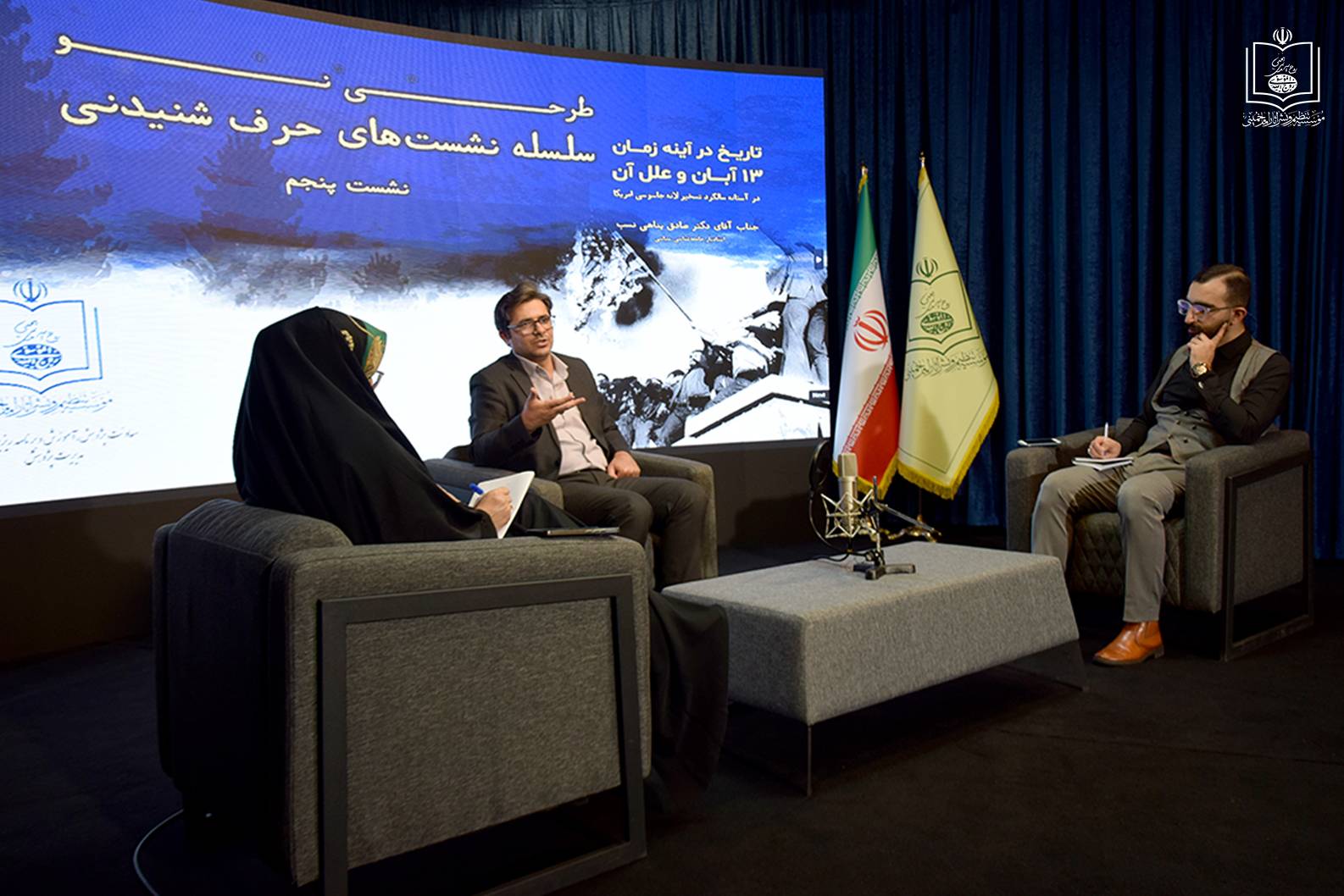 پنجمین نشست از سلسله نشستهای «حرف شنیدنی» با عنوان «تاریخ در آینه زمان: ۱۳ آبان و علل آن» به مناسبت سالروز تسخیر سفارت آمریکا، با حضور دکتر صادق پناهی نسب و به همت معاونت پژوهش، آموزش و برنامهریزی راهبردی برگزار شد.