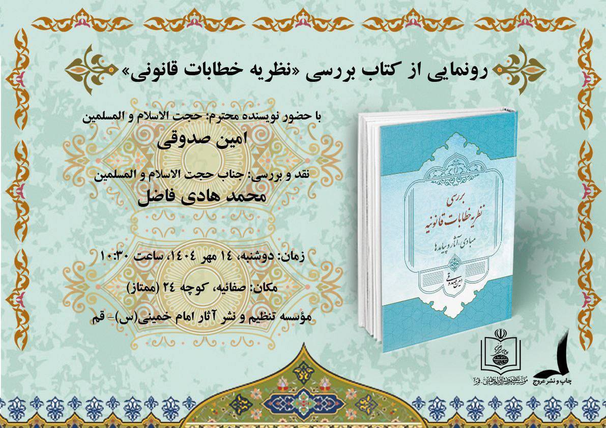 کتاب «بررسی نظریه خطابات قانونیه؛ مبادی، آثار و پیامدها» با حضور جمعی از اساتید و پژوهشگران در مؤسسه تنظیم و نشر آثار امام خمینی (س) قم رونمایی شد.