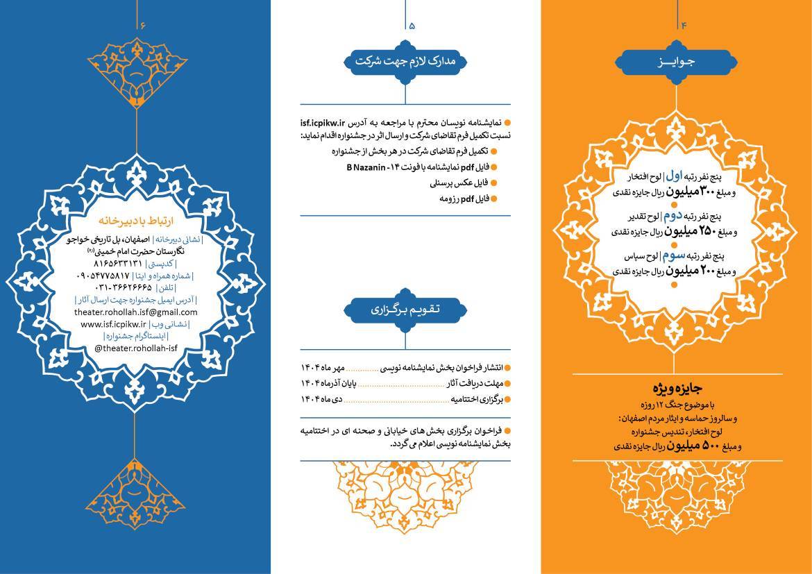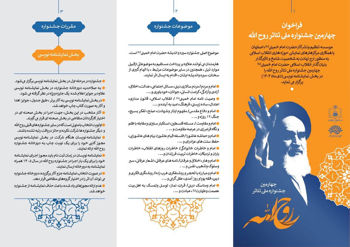 اطلاع رسانی چهارمین جشنواره تئاتر و نمایشنامه نویسی «روح الله» + بروشور