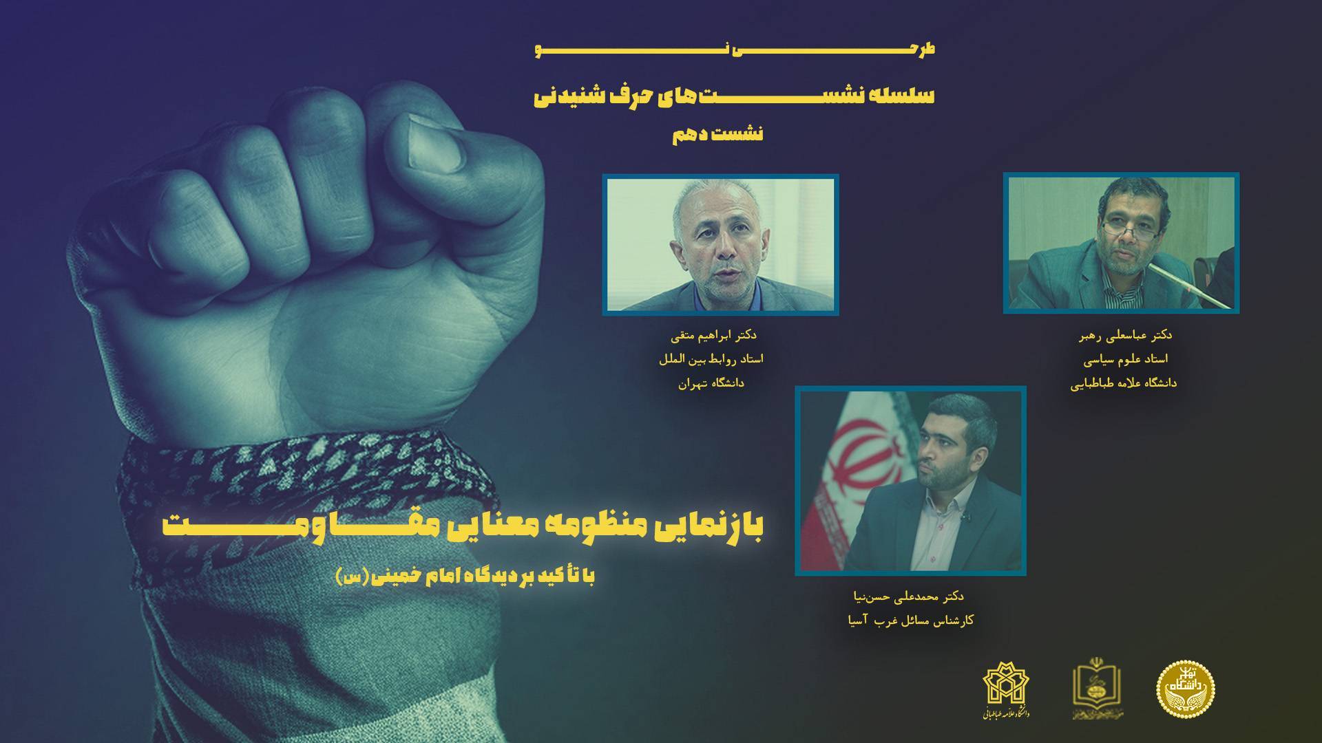 در این نشست، دکتر عباسعلی رهبر (استاد علوم سیاسی دانشگاه علامه طباطبایی) و دکتر ابراهیم متقی (استاد روابط بینالملل دانشگاه تهران) به بررسی ابعاد مفهومی، هویتی و ساختاری مقاومت در اندیشه امام خمینی (س) خواهند پرداخت.