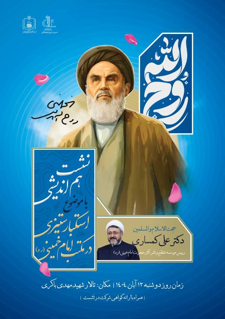 این نشست علمی روز دوشنبه ۱۲ آبانماه ۱۴۰۴ با سخنرانی حجتالاسلام والمسلمین دکتر علی کمساری، رئیس محترم مؤسسه تنظیم و نشر آثار امام خمینی (س)، برگزار خواهد شد.